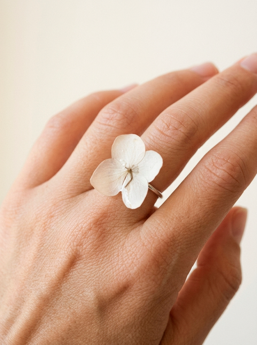 Joyas con flores naturales cuidadosamente seleccionadas, diseñadas para capturar la belleza efímera de la naturaleza en piezas únicas.